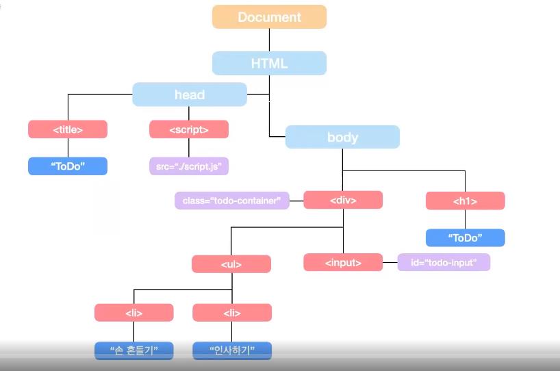- 브라우저가 HTML 문서를 파싱(*해석)하는 과정에서 생겨나는 객체